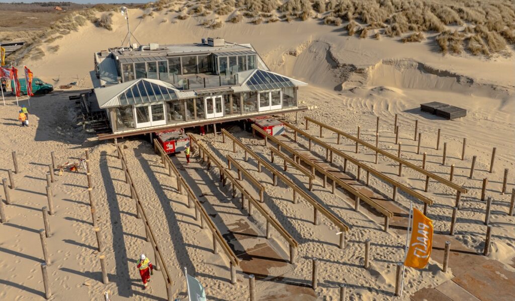 Mammoet a réalisé à la demande de JLD Contracting BV, le déplacement du pavillon « Paal 17 Aan Zee » sur l’île néerlandaise de Texel. Il s’agissait en effet, à la demande des autorités, de libérer l’espace nécessaire à la croissance des dunes, essentielle à la lutte contre l’érosion côtière.