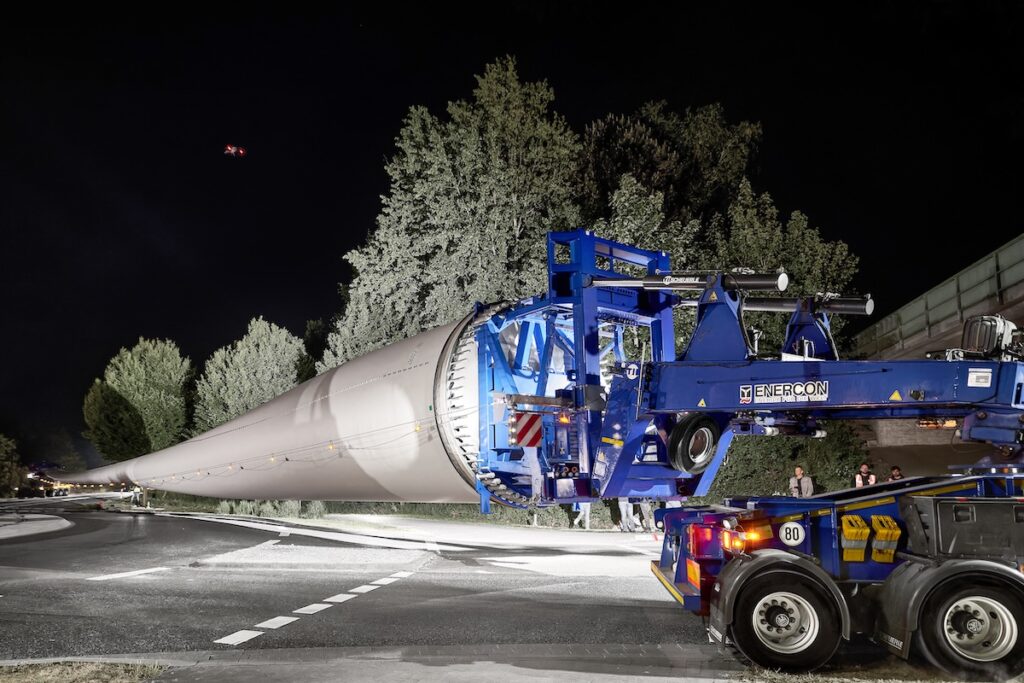 Dans le cadre d’un vaste projet de repowering à Lorup (en Basse-Saxe), Enercon remplace 16 anciennes éoliennes par dix modèles de dernière génération E-175 EP5. Parmi les défis logistiques : le transport de 30 pales géantes de 86 mètres, parmi les plus longues au monde en onshore!