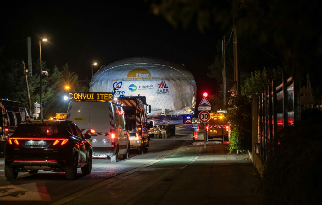 À la vitesse d’une personne marchant, le trajet de Berre-l’Étang jusqu’au site ITER, soit 70 kilomètres, prendrait environ 16 heures. Mais pour le cryostat, c’est un périple de cinq nuits qui a été nécessaire pour les équipes de Daher et Capelle.