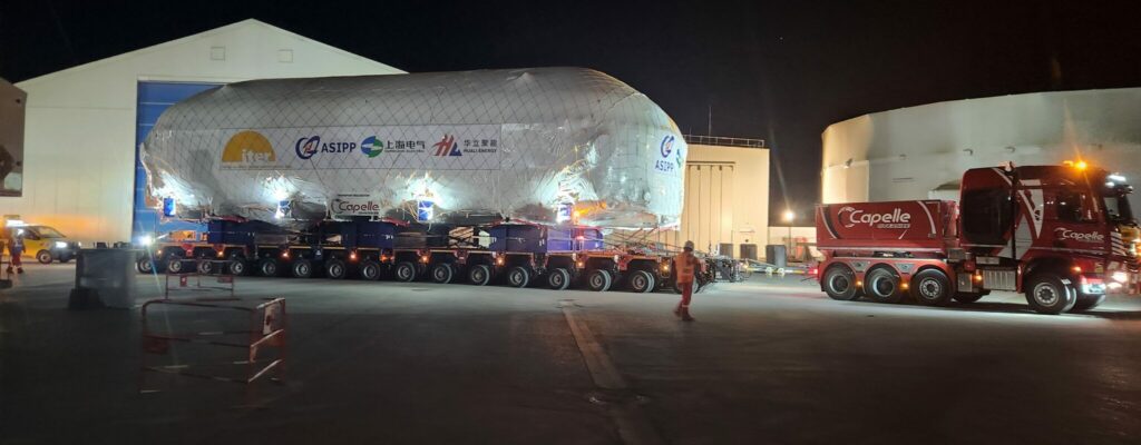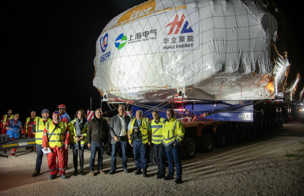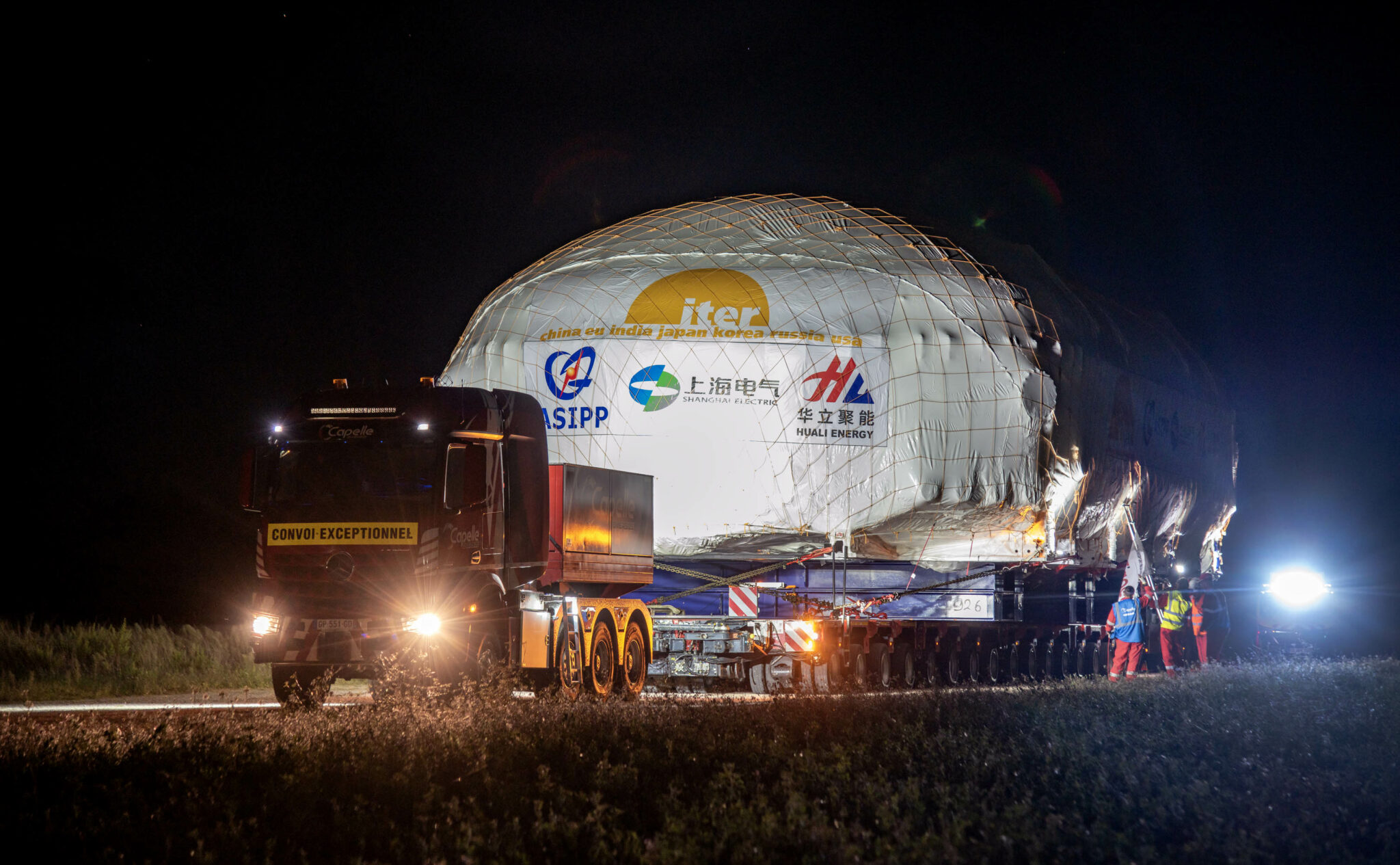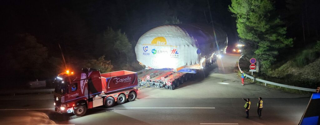 Le directeur général d’ITER, Pietro Barabaschi, a assisté au départ du convoi le 29 septembre à Berre-l’Étang, aux côtés des équipes logistiques de DAHER et de Capelle. L’itinéraire spécial grands gabarits, a été parfaitement négocié, y compris le passage entre deux falaises pour lequel des mesures millimétriques avaient été prises.