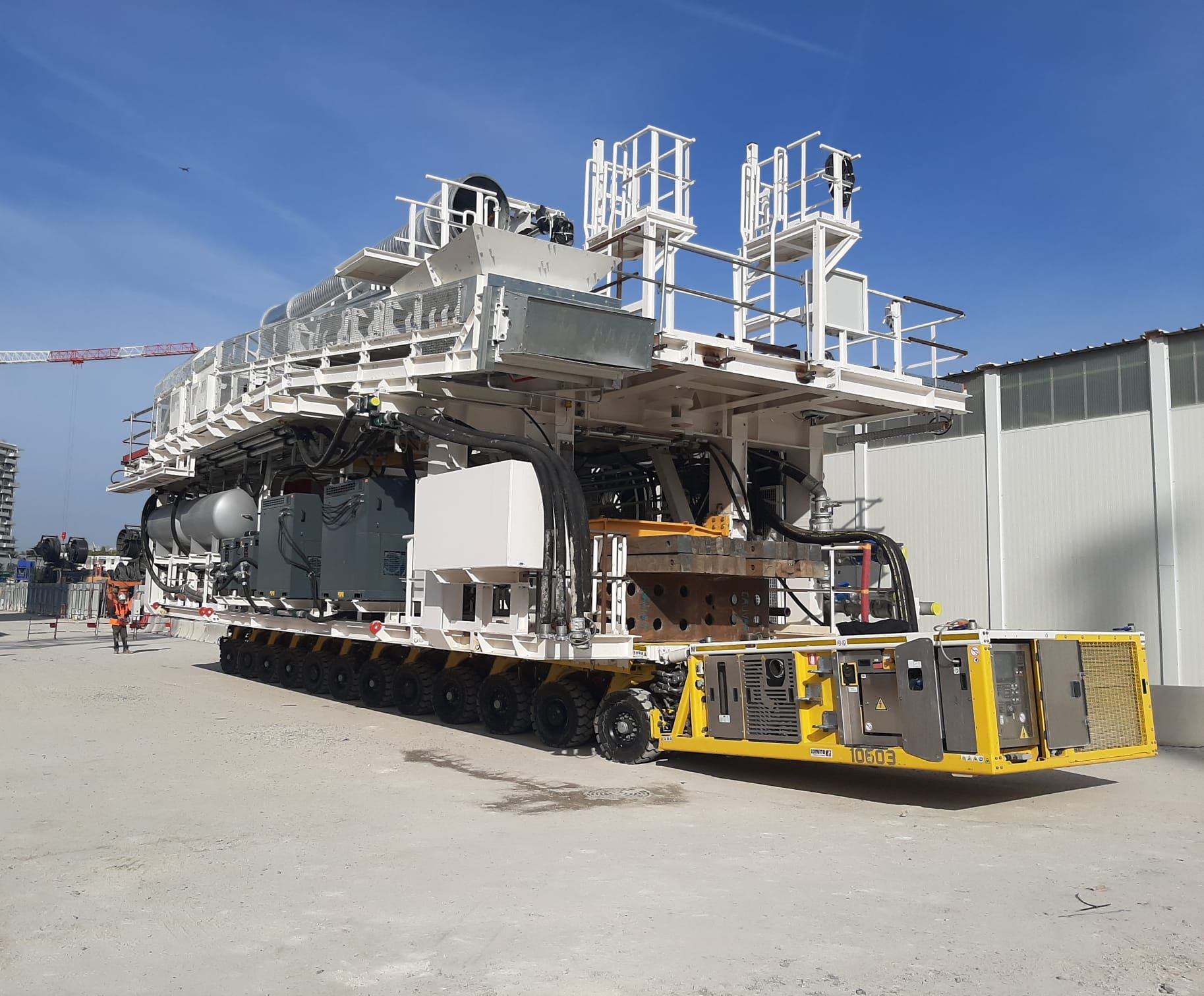 Pour cette opération, une remorque modulaire automotrice Cometto (SPMT) 4 × 12 lignes d’essieux équipée d’une PPU de 202 kW a été utilisée pour le transport de plusieurs colis lourds, dont la jupe et la roue de coupe du tunnelier. Le colis principal pesait 158 tonnes.