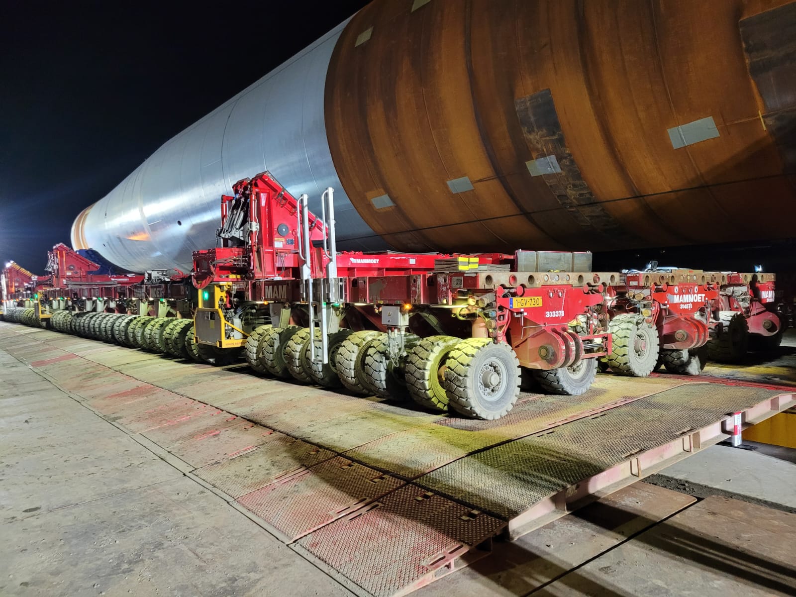 Pour y répondre, Mammoet n’a pas simplement mobilisé des équipements existants : l’entreprise a conçu de nouvelles technologies. Son système XXL de transport de monopieux, monté sur 90 lignes d’essieux SPMT, a permis de soulever et déplacer ces charges colossales en toute sécurité, tout en optimisant leur stockage grâce à une meilleure répartition du poids au sol.